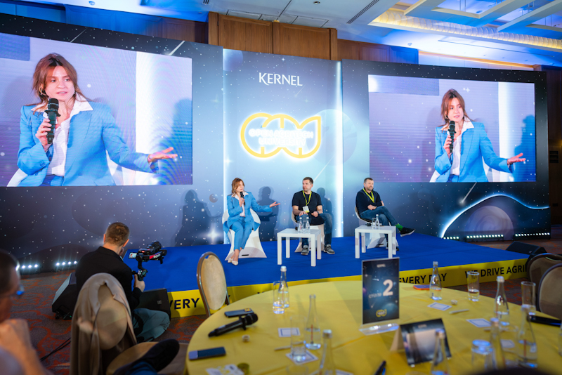У рамках заходу відбулася панельна дискусія з директорами напрямків компанії Kernel. Студенти мали можливість поставити запитання та отримати цінні поради щодо кар’єрного розвитку від Наталії Теряхіної, директора з персоналу, Сергія Волкова, фінансового директора, та Миколи Мірошниченка, директора з логістики. Зокрема, Наталія Теряхіна підкреслила: «Ми шукаємо дійсно мотивовану молодь, адже бажання розвиватися – вирішує все. У Kernel є середовище, люди, умови та можливості, які сприяють розвитку та реалізації справжніх ідей, тому ми відкриті для молодих фахівців, яким відгукуються наші цінності і ділимося з ними нашою експертизою. OAU – це шанс потрапити на роботу до найбільшої агротех компанії навіть без досвіду або ж набути знання нового часу і посилити ними інші компанії на ринку. Для цього ми адаптували програму й одразу залучаємо студентів на стажування, щоб вони пробували, вчилися і ставали частиною українського агро».