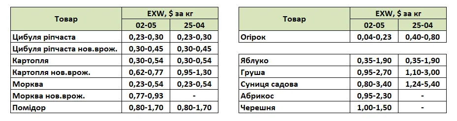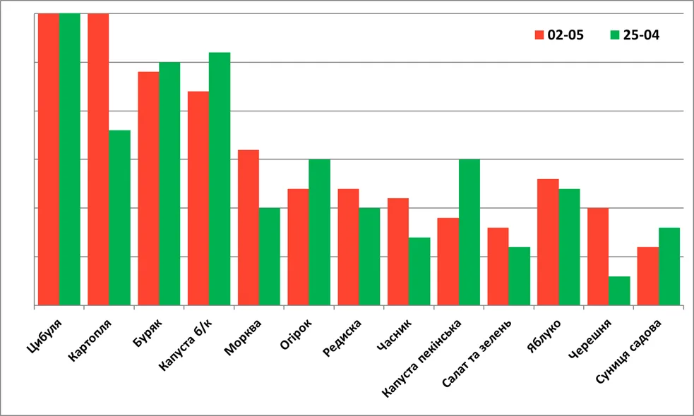 Зниження цін на цибулю та інші овочі, збільшення пропозиції черешні, абрикосів та ранніх овочів