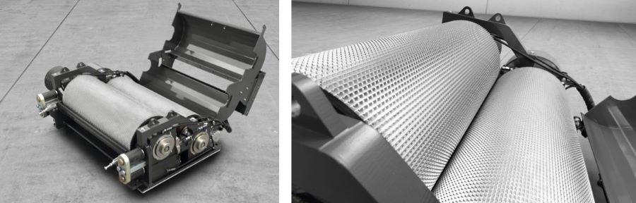 Завдяки новій, повністю гідравлічній системі попереднього ущільнення, вальці забезпечують рівномірний потік маси незалежно від товщини шару. Для технічного обслуговування блок ущільнення можна відхилити на 80°