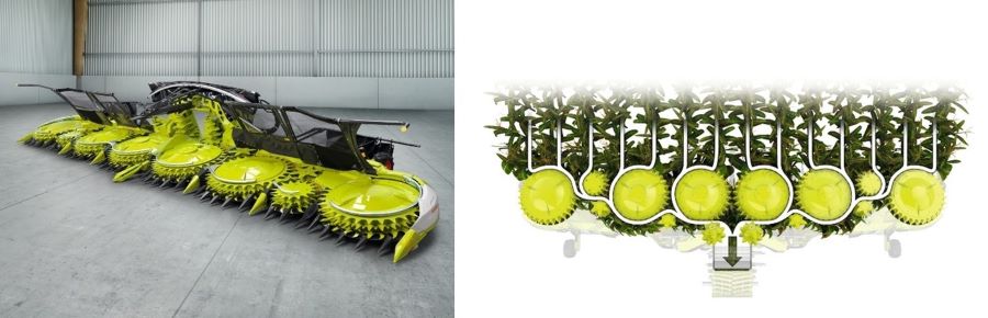 Найкоротша довжина зрізу та складні умови, як-от збирання врожаю зі щільними культурами, є справжнім викликом для потоку рослинної маси у кормозбиральних комбайнах. З огляду на це, компанія CLAAS розробила для JAGUAR 1000 найширший на ринку канал потоку маси в поєднанні з новою системою попереднього ущільнення. Чотири ролики попереднього ущільнення, які працюють за допомогою повністю гідравлічної системи, забезпечують рівномірний потік матеріалу незалежно від товщини шару. Це гарантує стабільну подачу до подрібнювального барабана V-FLEX, а отже, максимальну пропускну здатність, однорідну якість подрібнення та оптимальну загальну ефективність машини.