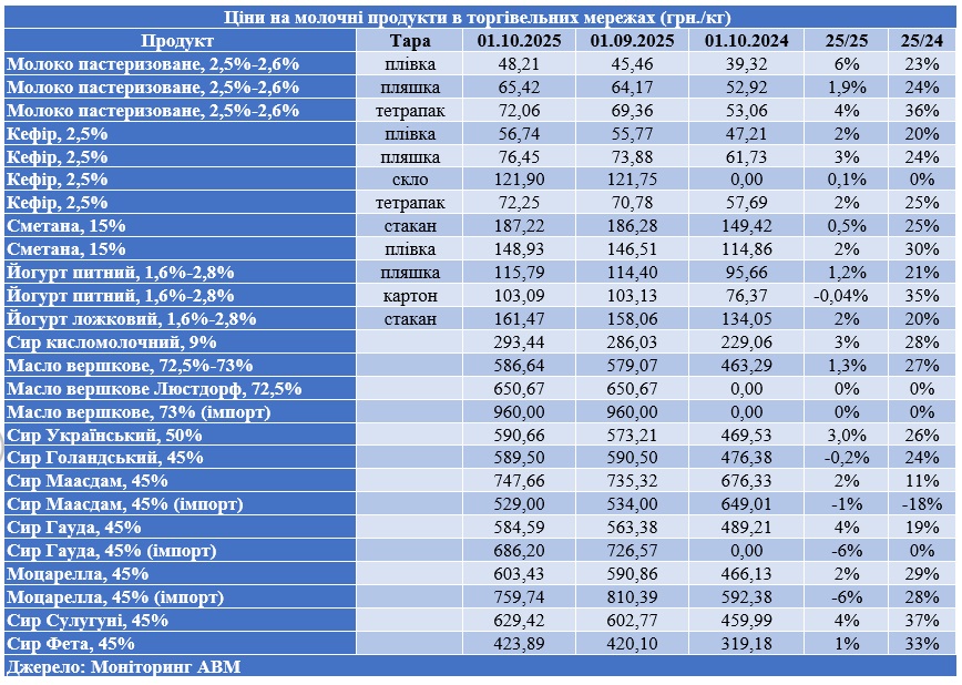 Це створює додаткову конкуренцію для українських виробників, що намагаються втримати прибутковість у складних економічних умовах. Згідно з аналітичними даними, у вересні спостерігалося підвищення цін практично на всі основні види молочної продукції: