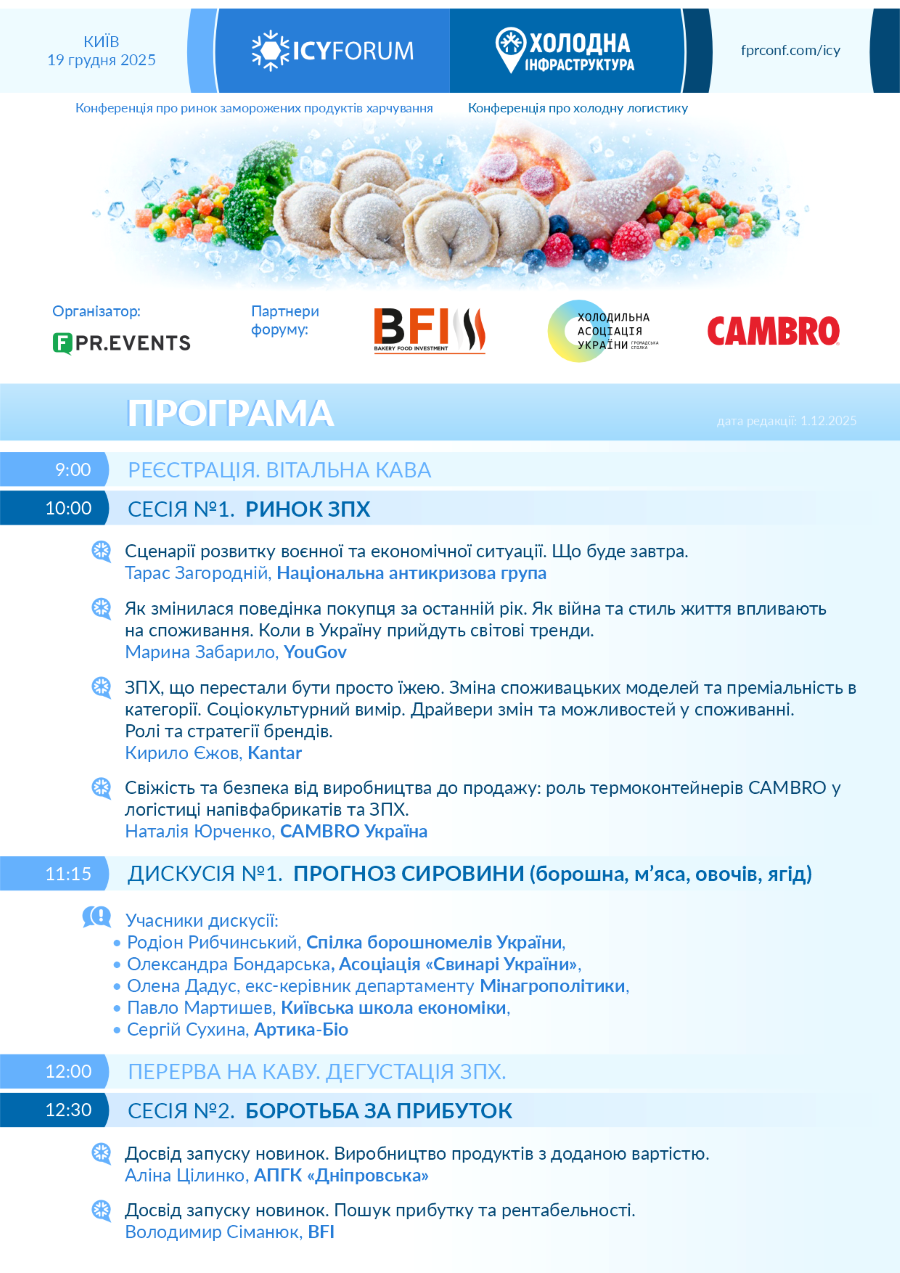 19 грудня в Києві відбудеться ICY FORUM - конференція №1 для виробників напівфабрикатів та заморожених продуктів харчування.