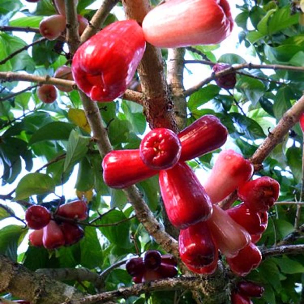 Тайські воскові яблука, ботанічно класифіковані як Syzygium samarangense, розвиваються скупченнями на великому тропічному дереві, яке може виростати до вісімнадцяти метрів у висоту. Незважаючи на назву, вони лише за кольором і текстурою шкірки нагадують яблуко і насправді є ягодою. Зріле дерево може дати до семисот фунтів фруктів за один урожай, а тайські воскові яблука, як правило, споживаються свіжими як соковита закуска.