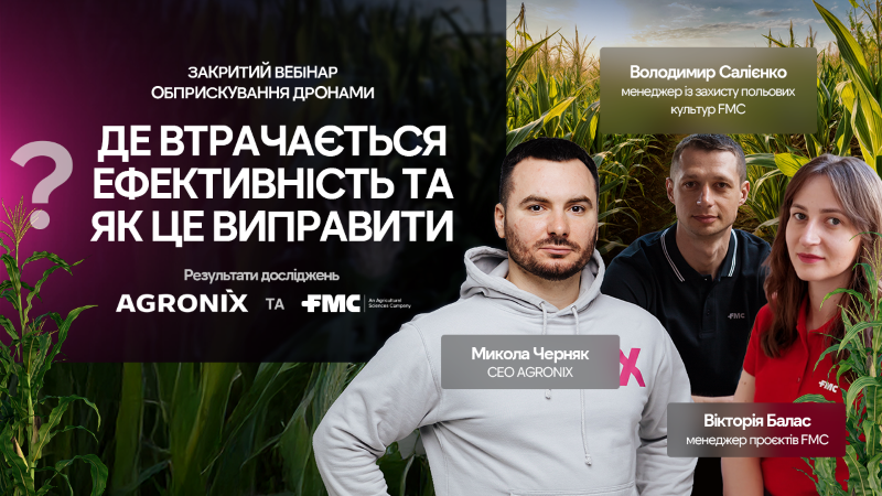 Сучасне агровиробництво дедалі частіше звертається до дронів як до інструменту точного землеробства. Проте наскільки ефективні ці технології у реальних умовах? Чи завжди агродрони дійсно працюють на результат? FMC та AGRONIX провели спільне дослідження, щоб знайти відповідь на це питання — і поділилися висновками під час вебінару «Обприскування дронами: де втрачається ефективність та як це виправити?»