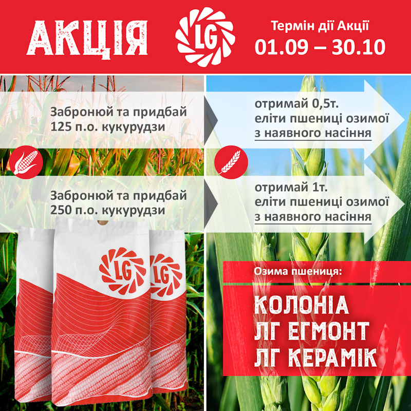 Провідний насіннєвий бренд ЛГ отримав визнання фермерів у більш ніж 140 країнах світу. І запити українських аграріїв завжди були у фокусі уваги фахівців компанії «Лімагрейн». Акція «Є пшениця — буде паляниця» вкотре стала цьому свідченням. Поєднання найкращих досягнень у світовій селекції кукурудзи й озимої пшениці покликане забезпечити врожайний прорив на наших полях.