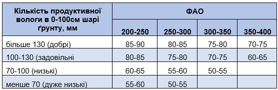 Таблиця 1. Запаси продуктивної вологи в грунті ранньою весною.