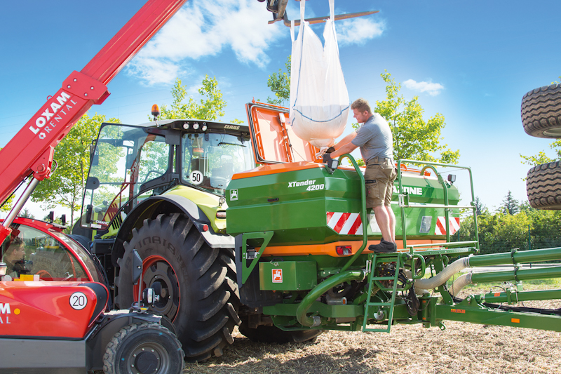 Драбина й відповідна платформа, що постачаються серійно, забезпечують зручний доступ до бункера. Завдяки великому отвору завантаження бункера виконується дуже легко та швидко.