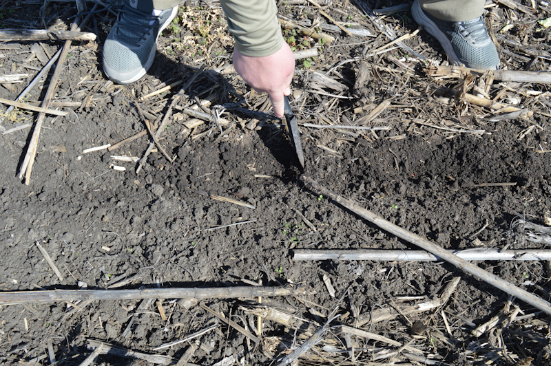 — Ми сіємо на швидкості 14–16 км/год і, відповідно, дуже швидко засіваємо наші площі кукурудзою, соняшником й озимим ріпаком. Немає жодних проблем, і ви самі бачите, що кожна насінина — на однаковій відстані від сусідньої. Аналогічно — глибина висіву. А я можу сказати, що в no-till значна частка успіху залежить саме від якості сівби, — зазначає Сергій Петрович.