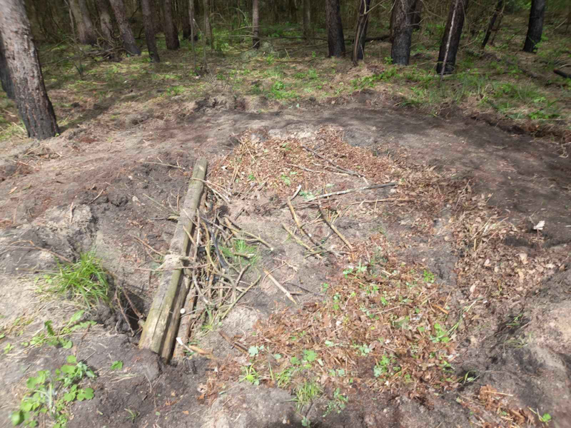 КРОК 5. Сформувати V-подібний рівчак для ТГР шириною близько 60 см і глибиною 25-30 см навколо вирви на відстані 50-60 см від краю. Землю скидати у вирву вперемішку з органікою і всіма іншими складовими. Органіки має бути більше, ніж ґрунту.