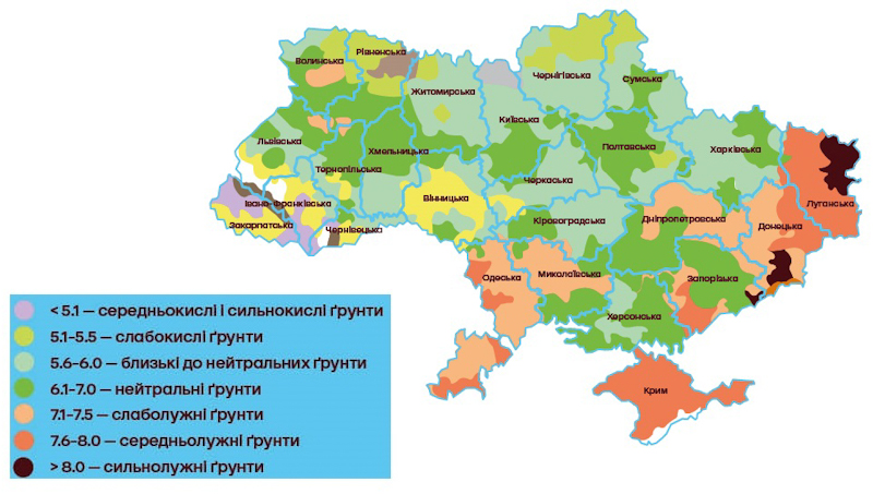 За даними Ukravit Institute, понад 60% ґрунтів в Україні мають pH(сольовий) нижче 5.5, що суттєво обмежує здатність культур засвоювати мінеральну поживу із добрив та ґрунту. Водночас, попри побутуючу думку про суперродючі українські чорноземи, третина ґрунтів країни мають низький вміст гумусу – нижче 2%. А від 30% до 50% ґрунтів – від середнього до дуже низького вміст рухомих сполук сірки та мікроелементів – сполук бору, цинку, міді, молібдену, марганцю. Як наслідок, аграрії не можуть сповна реалізувати потенціал родючості ґрунтів, розкрити генетичний потенціал культур і отримати максимальну віддачу від застосованих мінеральних добрив. Тому фахівець рекомендує звернути увагу на ті технологічні заходи, які можуть допомогти виправити становище.