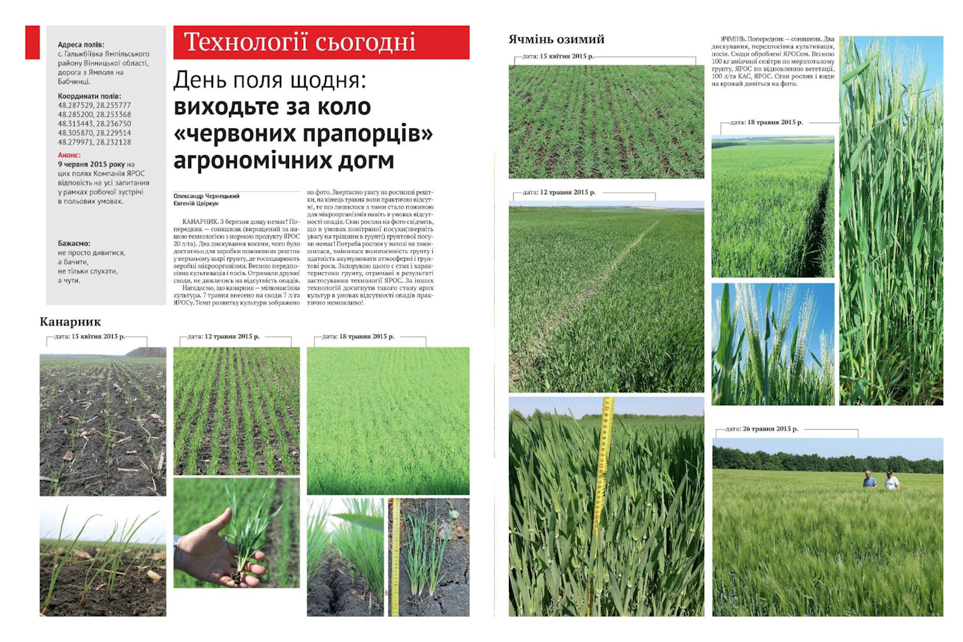 Саме тому, щоб змінити цей підхід та показати реальну картину, ми задумали проєкт, який назвали День поля щодня. Цей проєкт був започаткований з нашим партнером журналом Агробізнес сьогодні. І мета його була показати об’єктивну картину, незалежно від того, подобається вона мені чи ні. Реалізація включала наступне. Ми запросили до участі нашого клієнта, який має господарство у Ямполі (на той момент в ньому було 1800 гектарів). На його полях демонстрація відбувалась в реальному часі: від посіву до збору врожаю. В журналі Агробізнес сьогодні ми анонсували цей проєкт, дали координати полів, куди кожен бажаючий міг приїхати в будь-який момент і сам подивитися, що відбувається насправді та оцінити об'єктивну ситуацію. Паралельно з цим в журналі ми почали описувати технологію та що на конкретний момент було зроблено, як зроблено і давати фотографії стану полів на момент подачі матеріалу в розрізі декількох місяців.