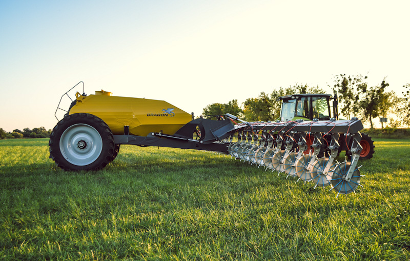 Така техніка завойовує все більшої популярності серед аграріїв. Вони розглядають можливість вносити рідкі добрива, зокрема і КАС. У компанії представлено агрегат Dragon, що має ширину захвату 12 м та 6-кубову бочку з неіржавної сталі. Цим агрегатом можна працювати як по просапних культурах, так і по пшениці й ячменю, що практикують клієнти компанії. Агрегат можна модифікувати з посекційним вимкненням або автоматичним. Можна комбінувати різну систему фільтрації. Модель може бути як дорожчою, так і дешевшою. Баки агрегата Dragon передбачено як із неіржавної сталі, так і менші на 3 м³ із пластику, тобто такий варіант більш бюджетний.