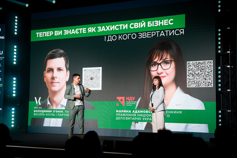 Ще одним актуальним викликом є рейдерство – те, з чим краще ніколи не зустрічатися, але про що варто знати все. Тож на конференції було розглянуто case-study «Нові засоби захисту та розвитку бізнесу за допомогою рішень національного депозитарію» від партнера «Василь Кісіль і Партнери» Володимира Ігоніна та членкині правління Національного депозитарію України Марини Адамовської. Спікери переконані, що депозитарний облік часток є надійним захистом від рейдерства, оскільки частка зберігається не в реєстрі, а на рахунку в обліковій системі НДУ, доступ до рахунку з часткою має лише НДУ або обрана учасниками депозитарна установа, а депозитарна установа знає свого клієнта «в обличчя».