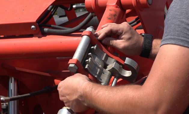 Так, однією з очевидних переваг KUHN Optimer L 6000 є зручне регулювання за допомогою гідравлічного телескопічного дишля. Усі налаштування виконуються одним важелем, а також за допомогою спеціальних кліпс, які переставляють залежно від глибини, на яку агроном хоче працювати.