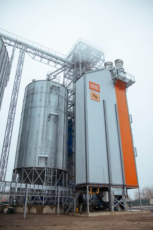 Наразі збудовано першу чергу, яка складається із силосу на 6300 т, зерносушарки Brice-Baker продуктивністю 28 т/год, хопера для автовідвантаження, хопера для накопичення зернової маси, а також транспортного обладнання. «Ми надали все технологічне обладнання, крім зерноочисної машини, — розповідає представник KMZ Industries. — Також наші спеціалісти провели шеф-монтаж, автоматизацію і пусконалагоджувальні роботи. На сьогодні зерносушарка вийшла на режим продуктивності. Разом із замовниками вже просушили першу партію зерна 600 т.
