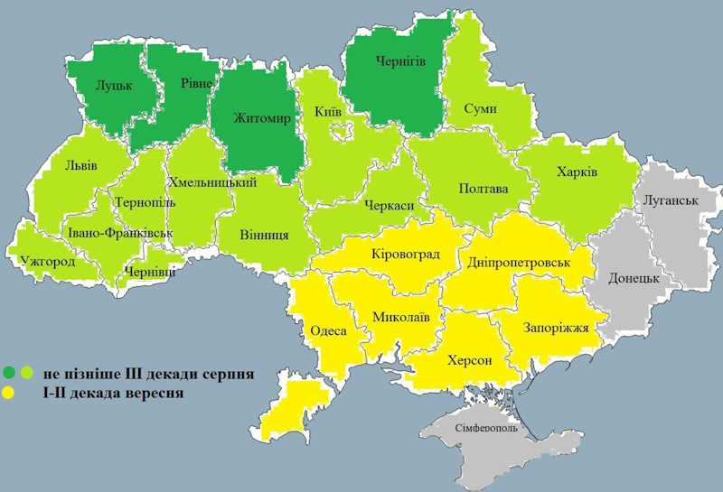 Рекомендовані терміни останнього скошування люцерни за зонами