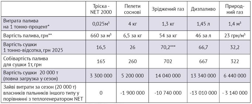 Порівняння витрат на сушку теплогенераторів на різних видах палива