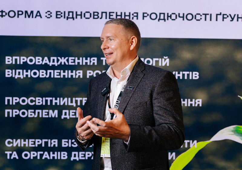 З вітальним словом виступив засновник платформи BTU Soil Health, генеральний директор групи компаній BTU Владислав Болоховський, який наголосив на тому, що деградації ґрунтів — це проблема світового рівня, яка накопичується десятиріччями. Питання відновлення ґрунтів — першочергове та складне завдання. Розуміючи це, компанія BTU впроваджує біотехнологічні рішення для відновлення та збереження родючості ґрунтів.