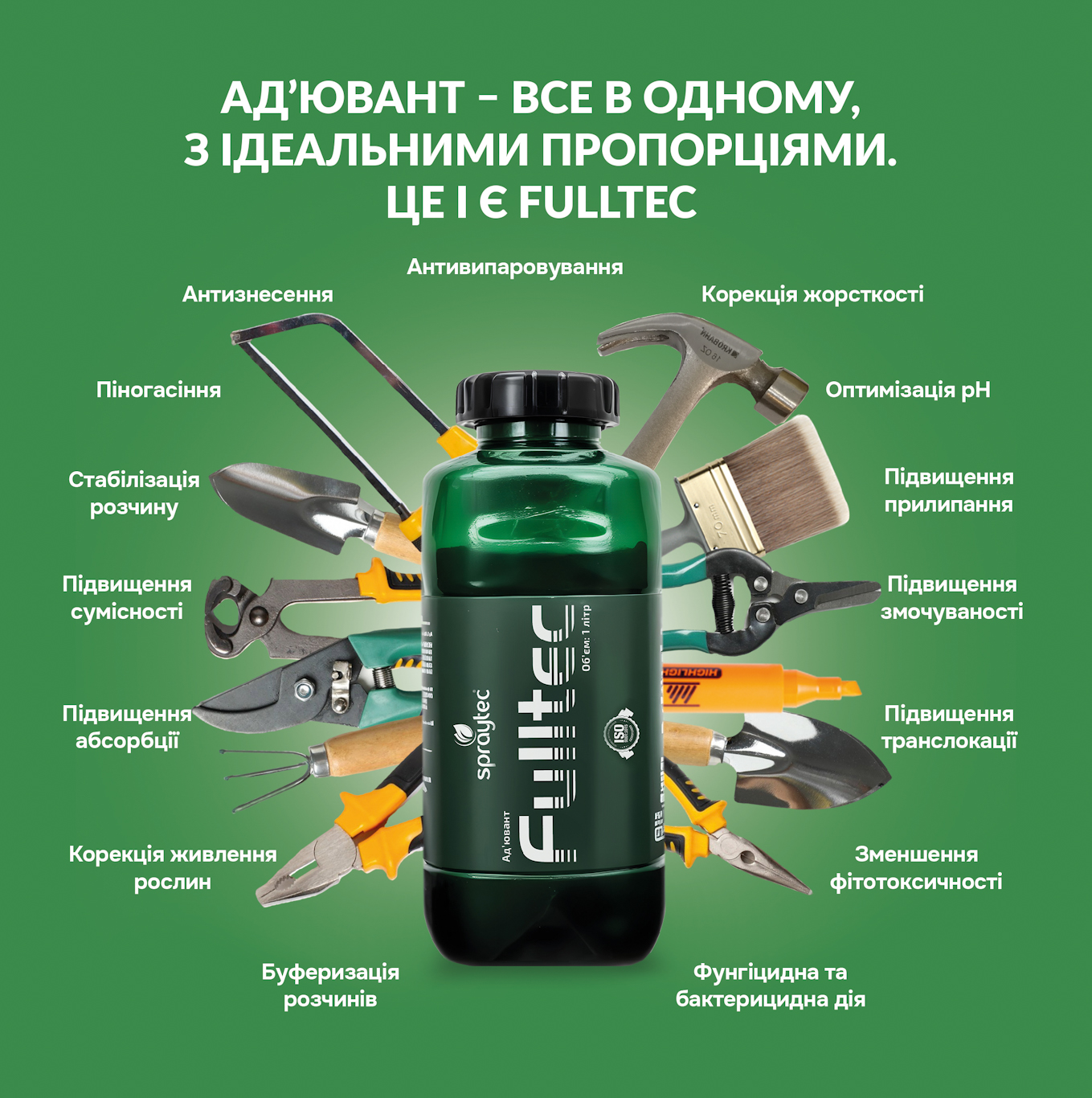 Вони мають максимум необхідних властивостей — антивипаровування, піногасіння, нормалізація кислотності, прилипання, розтікання, емульгація тощо. До того ж це все — не просто красива декларація, як іноді трапляється на ринку. Кожна корисна властивість у складі препаратів FULLTEC підтверджується відповідною діючою речовиною. І це все — в одному препараті! Не потрібно купувати й змішувати у робочому розчину кілька продуктів різного типу — достатньо одного нашого ад’юванту, — пояснює комерційний директор «Спрейтек Україна».