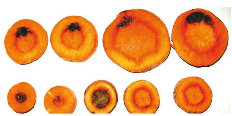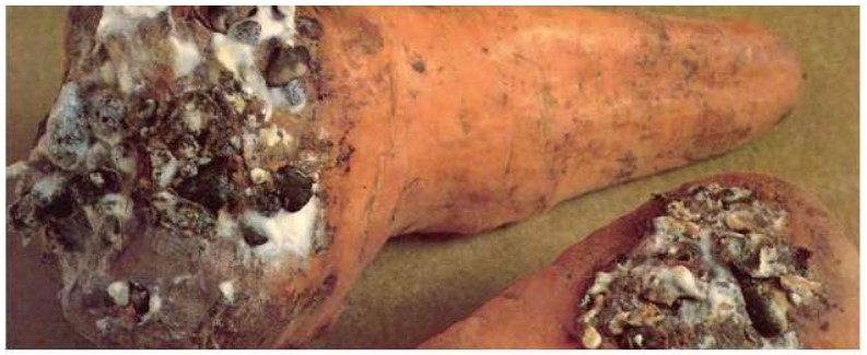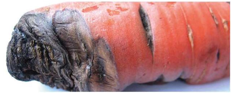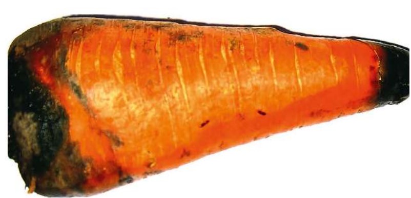 Перші ознаки хвороб на моркві виявляють на коренеплодах ще в період вегетації рослин, але найінтенсивніший розвиток гнилей відбувається за зимового їх зберігання. Втрати врожаю коренеплодів від гнилей можуть сягати 50–70% і більше.