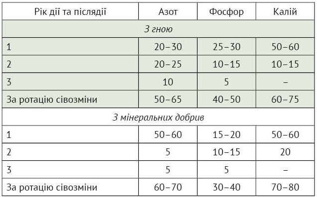 Таблиця 1. Коефіцієнти використання поживних речовин, %