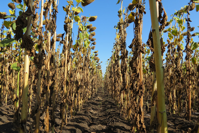 Тож після дозрівання рослини треба висушити, а вміст вологи в насінні знизити. Якщо соняшник сіють на початку вегетаційного періоду, то врожай може дозріти ще впродовж літа. Очікування, коли насіння стане достатньо сухим, збільшує ризик втрат під час збирання. І коли суто природні чинники належній передзбиральній вологості не сприяють, то на порядку денному може постати десикація.