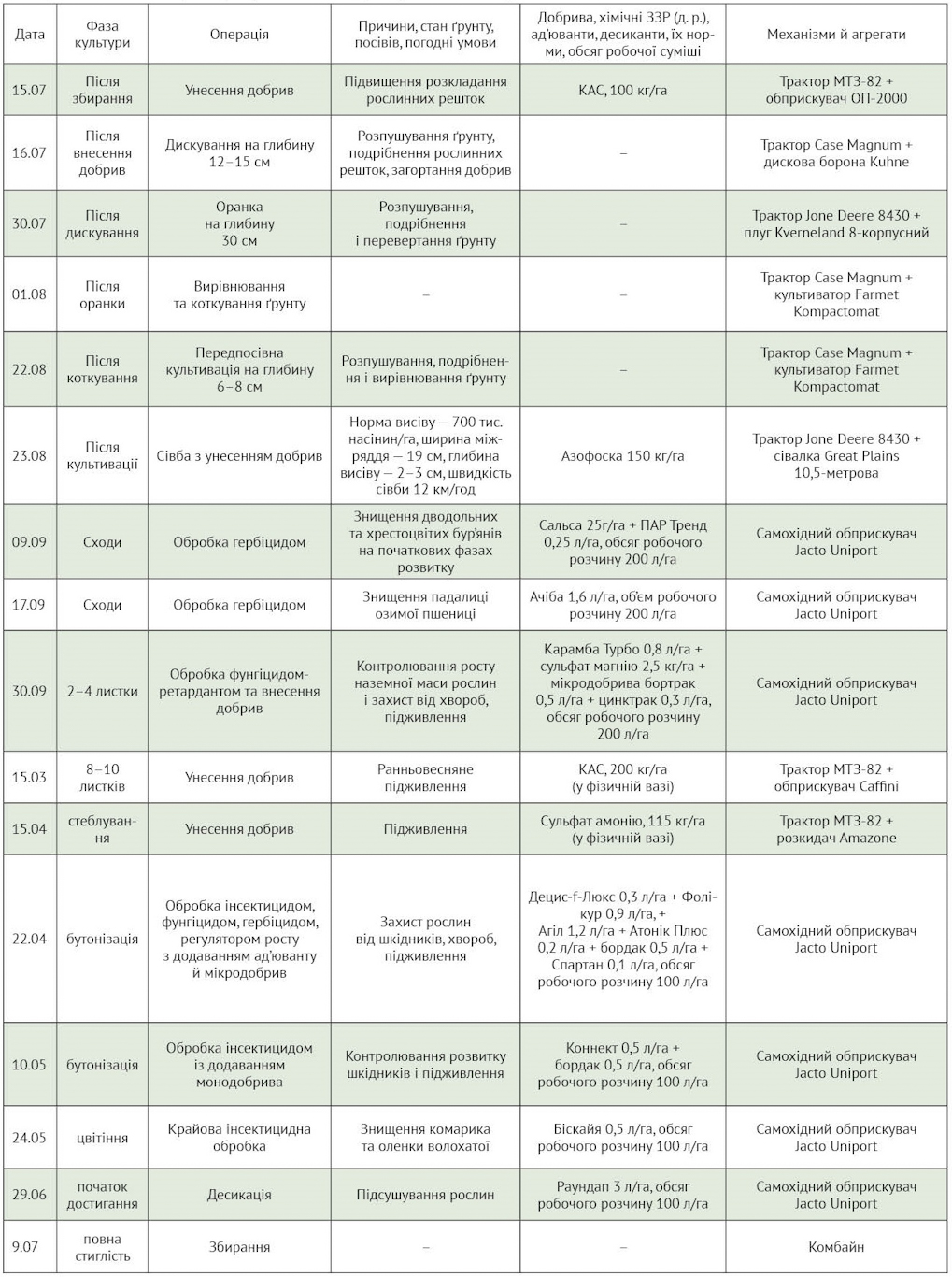 Таблиця 1. Технологічна карта вирощування озимого ріпаку в зоні Лісостепу