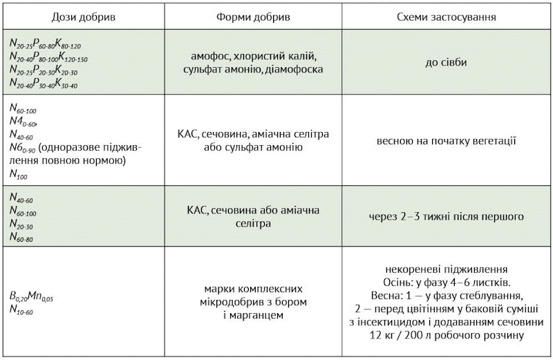 Таблиця 2. Система живлення під озимий ріпак (урожайність 40–50 ц/га) у зонах Лісостепу і Полісся