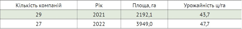 Максимальна врожайність у демонстраційних дослідах із 2020 року становила 56,1 ц/га у філії «Перспектив» ПрAT «Зернопродукт МХП» на Івано-Франківщині, а також 60,3 ц/га (2022 року) у ПП «Агрофірма “Дзвони”» на Львівщині та ПП «Аграрна компанія 2004» у Хмельницькій області.