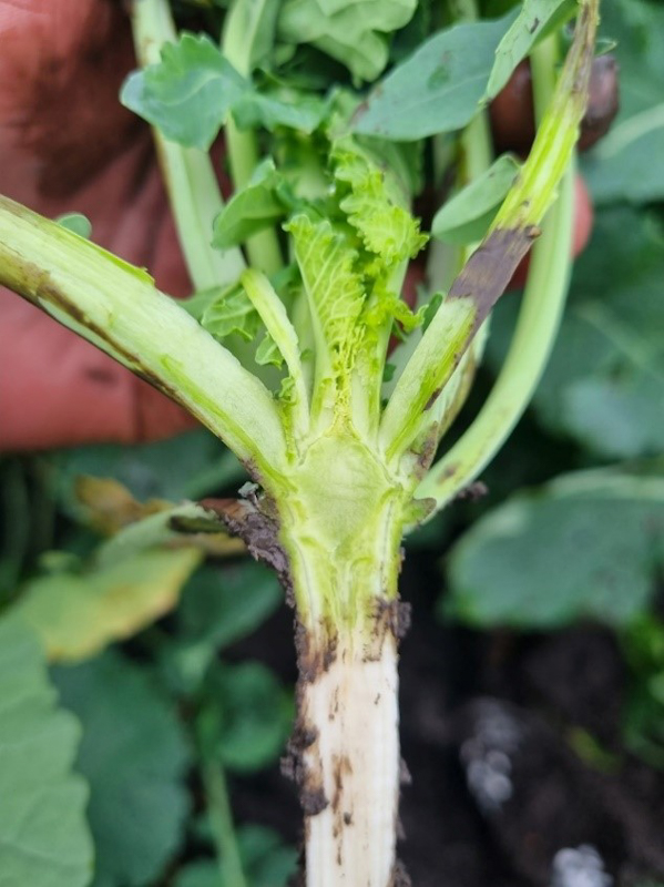 Для ріпаку в осінній період найнебезпечнішим є фомоз (Phoma lingam (Tode) Desm.). Ця інфекція є дуже поширеною, діагностується в усіх регіонах вирощування ріпаку, капустяних культур у цілому, місцях поширення бур’янів цієї родини. Фомоз пошкоджує проростки (так звана чорна ніжка), сім’ядолі, листки, стебла. В місцях ураження формуються плями з численними чорними пікнідами. На стеблі плями і виразки розростаються поступово, призводять до розтріскування кореневої шийки (так званий рак, або ламкість стебла). Це небезпечна форма хвороби, що провокує передчасне дозрівання ріпаку, вилягання рослин і значний недобір урожаю (при ураженні стручків – до 30–50%).