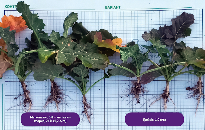 Вплив Грейвісу на габітус ріпаку у порівнянні з конкурентом (Тернопільська обл., 2021 рік)