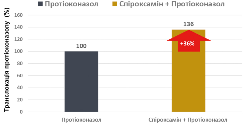 Поглинання Протіоконазолу у якісній формуляції в суміші з Спіроксаміном збільшується на 36%