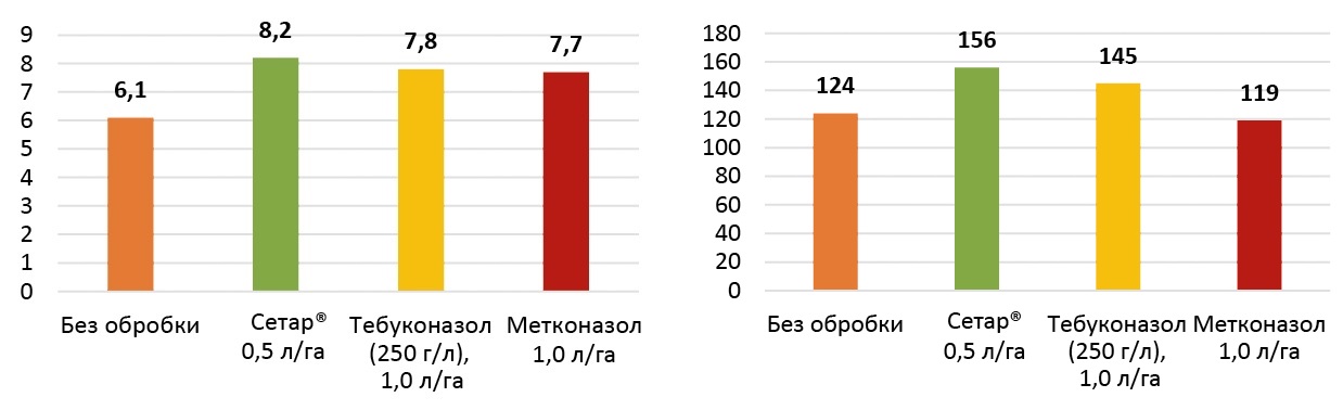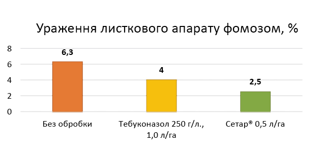 Сетар® є кращим поєднанням рістрегулятивних властивостей та найвищої серед подібних продуктів ефективності проти основних хвороб ріпаку в осінній і ранньовесняний періоди, включно з фомозом.