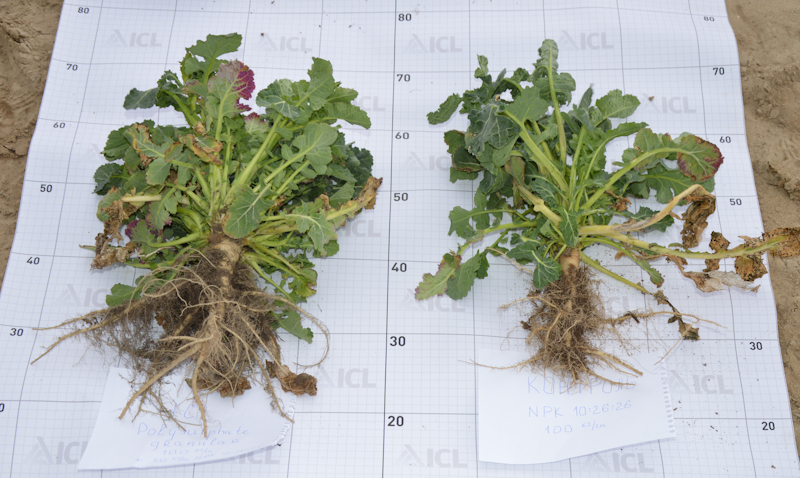 Там, де був застосований Полісульфат, краще розвинутий габітус ріпаку та більша маса кореневих волосків
