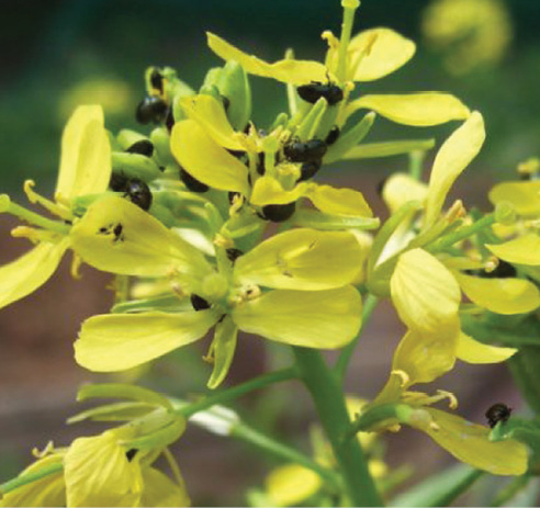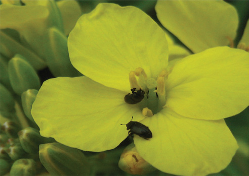 Рис. 2. Імаго ріпакового квіткоїда в масі, ННВЦ «Дослідне поле», ІІІ декада червня 2018 р. (фото автора)