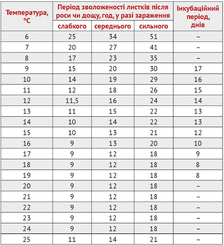 Таблиця Міллса для прогнозування ступеня зараження яблуні паршею
