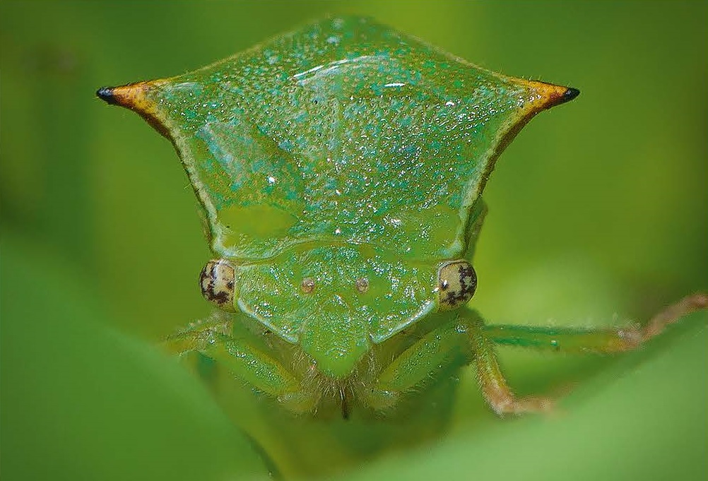 Комаха велика, приблизно 1 см, зеленого кольору, із «ріжками».