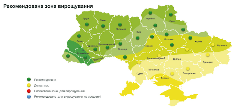 • Рекомендована зона вирощування — Лісостеп, Степ (Центральний і Північний), Полісся;
