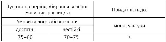 • Гібрид має негативну реакцію на загущення в умовах, коли волога є лімітаційним чинником;