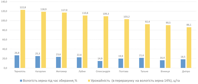 • Уміст білка в зерні — 9,7–10,6%;