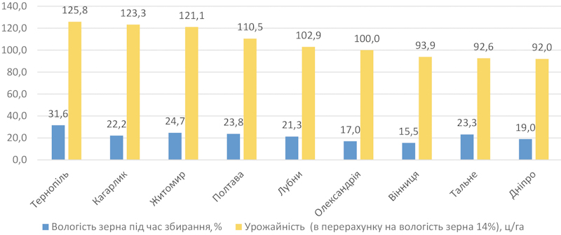 • Уміст білка в зерні — 9,5–10,7%;