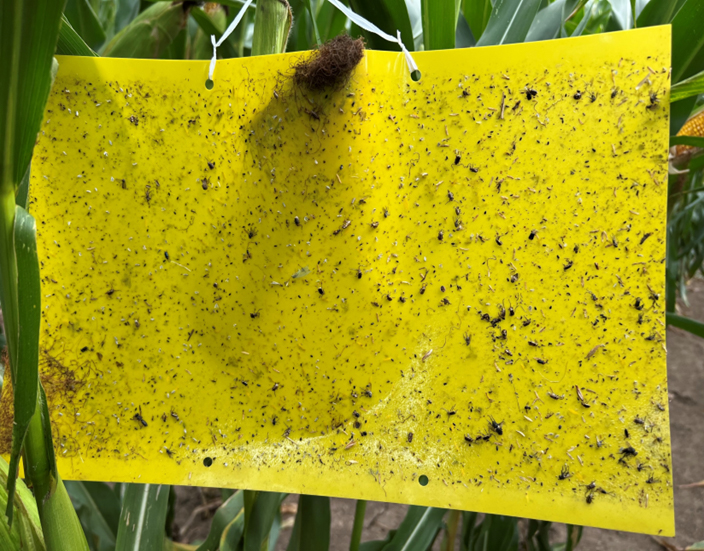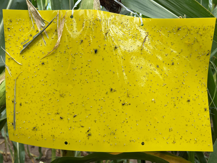 У 2023 році застосовували новітній інсектицид Ваєго®, внесли його квадрокоптером. Вирішили вносити препарат проти західного кукурудзяного жука (діабротики), бо на кожній рослині було виявлено від трьох особин шкідника, також на полі були й бавовникова совка, лучний метелик і попелиці. Я прийшов на третій день після внесення на поле і не знайшов тут жодного шкідника. Препарат спрацював прекрасно, одним унесенням забрали всіх шкідників кукурудзи!